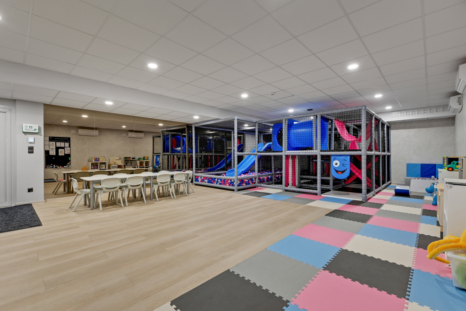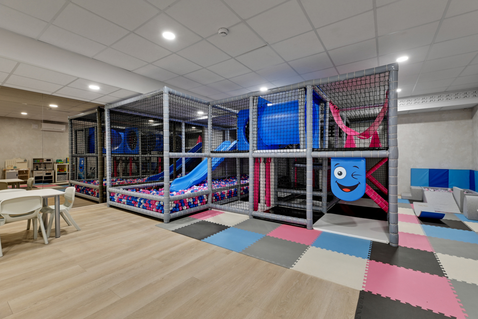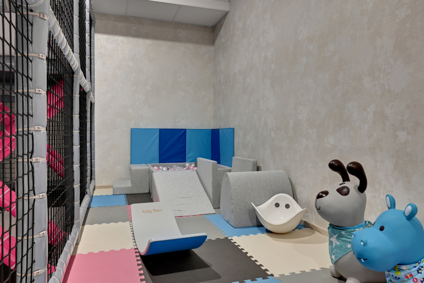 The playroom includes, among others: a colorful obstacles, a slide, a ball pool, games and toys. There is also a games room with a console.