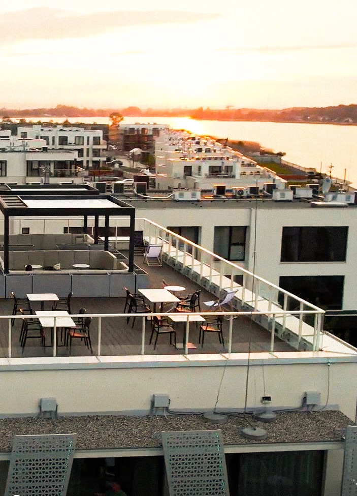 Sunset Bar is a unique place located on the roof of the Grano Hotel Solmarina, with a magnificent view of the marina. It is the perfect space for an evening cocktail or a summer event with live music. In the atmosphere of the setting sun, every moment here takes on a unique character.